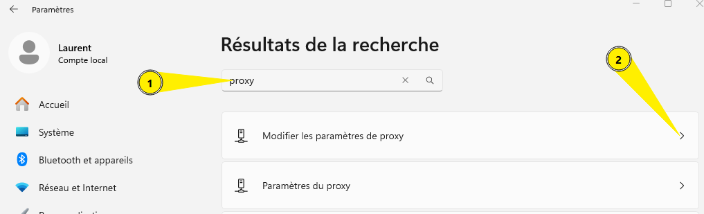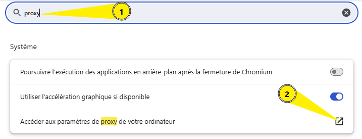 Vous devez poursuivre la configuration du proxy dans la partie ci-dessous : Réglage du proxy Windows