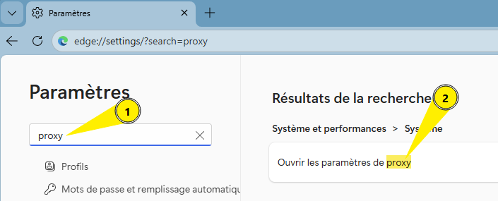 NB: Le navigateur Microsoft Edge ne permet pas d'établir une liaison chiffrée avec notre proxy.