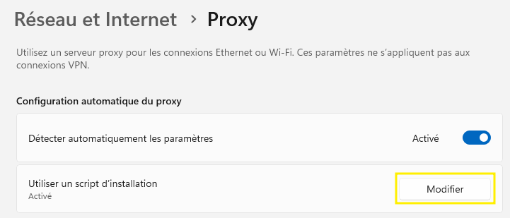 proxy. Puis cliquez sur le bouton de réglage du proxy Windows :